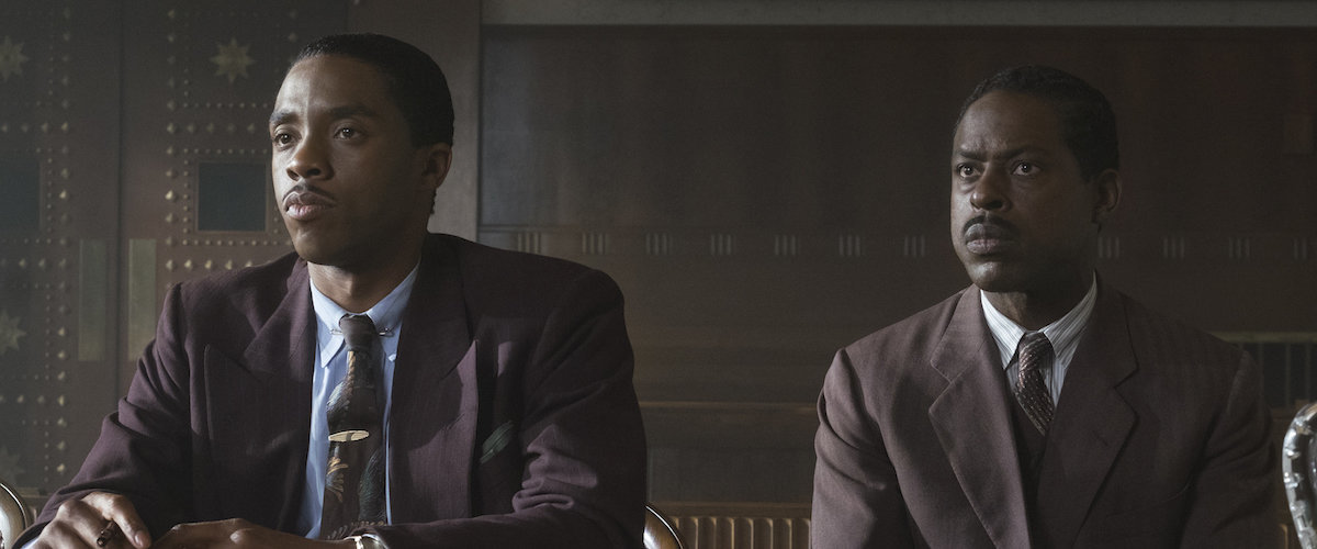 Chadwick Boseman’s portrayal of Thurgood Marshall in the early part of his career is perfectly terse and passionate. Initially, one (I included) would think that a more synoptic look at Marshall’s career would bear more cinematic fruit, but Marshall‘s focus on one pivotal court case is rather riveting.